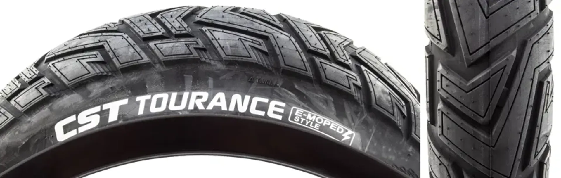 Fat tire designed for use with E-Moped and E-Bikes on pavement and hard pack surfaces.